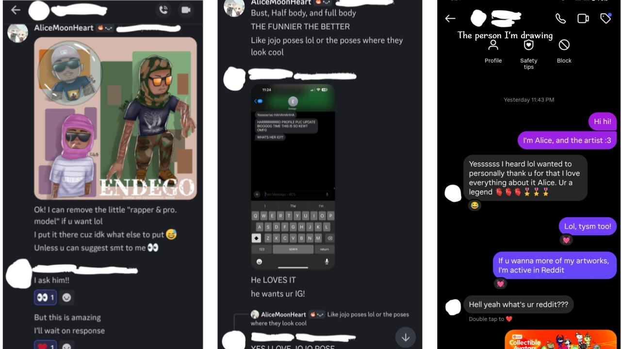 I send multiple pictures/screenshot of my progress and I upload my finished artworks in my IbisPaintX account (For proof and speedpaints). For further inspection, I also post my artworks in my Reddit account. Let's work together!And yes! Alice and AKaebelyn are both my signitures since Alice is from my old artworks